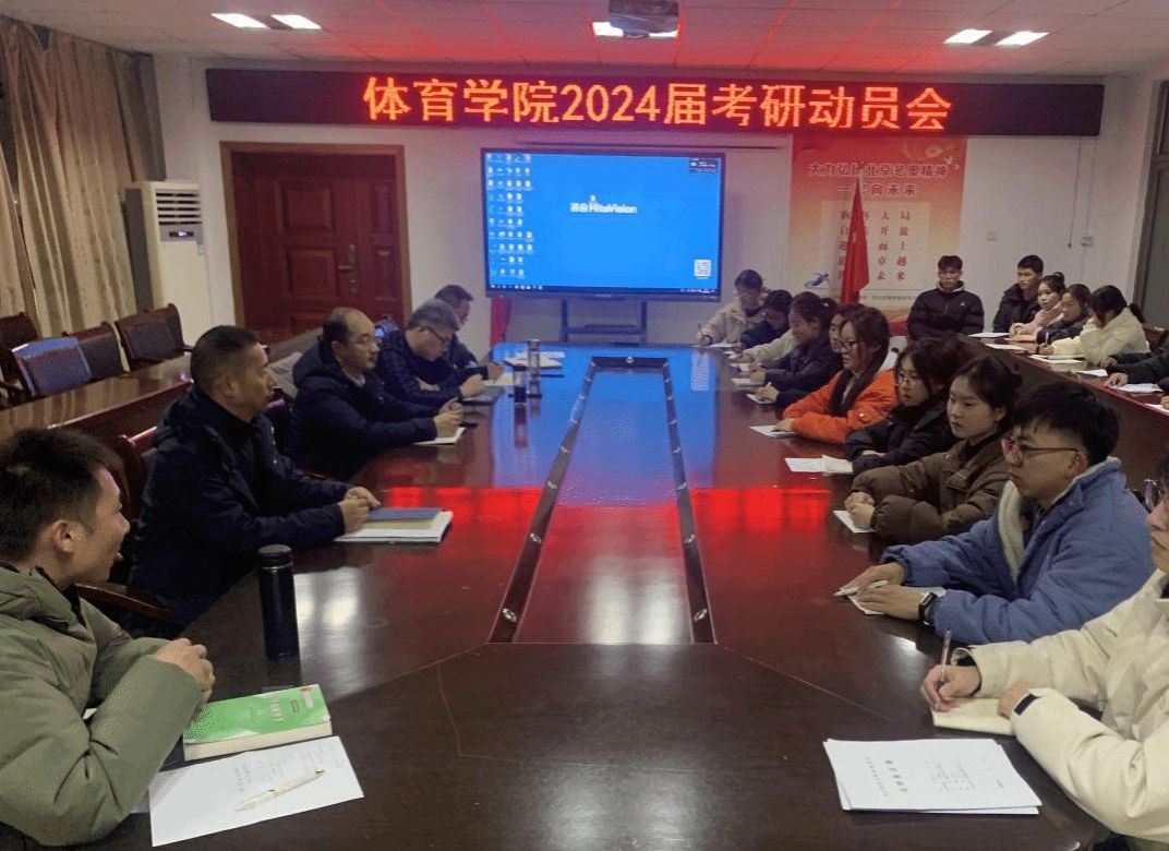 12月12日,体育学院在体育馆三楼会议室召开2024届毕业生考研动员会。学院党委副书记王玮、副院长王晓东出席本次动员会并作讲话,教师代表、毕业班辅导员和2024届考研学生代表参加会议。