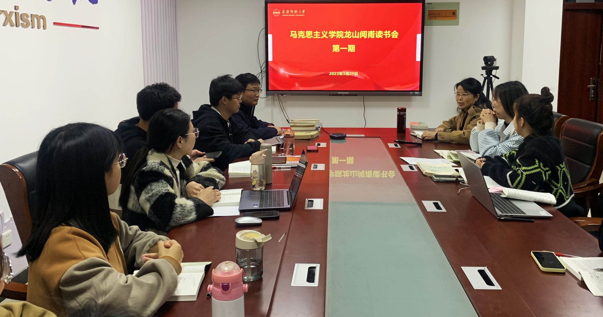 3月27日,马克思主义学院龙山阅甫读书会成立仪式暨第一期读书活动在Q213会议室举行。学院研究生和部分青年教师参加读书会,院长严仍昱参加本次活动并发言,活动由龙山阅甫读书会指导教师张二远博士主持。