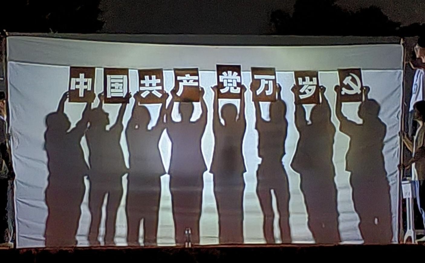 “让我们的子孙后代,享受前人披荆斩棘的幸福吧!”随着现场灯光暗下,由旅游管理(对口)2022(1)班带来的光影戏《觉醒兄弟》向大家艺术再现了一百年前中国先进知识分子和满腔热血的青年们为真理而斗争、为理想而牺牲的如歌岁月。表演者们身着民国服饰、高举党旗,在红色历史情境中生动展现了中国共产党成立先驱的人格之美、初心之纯、信仰之坚、主义之真。