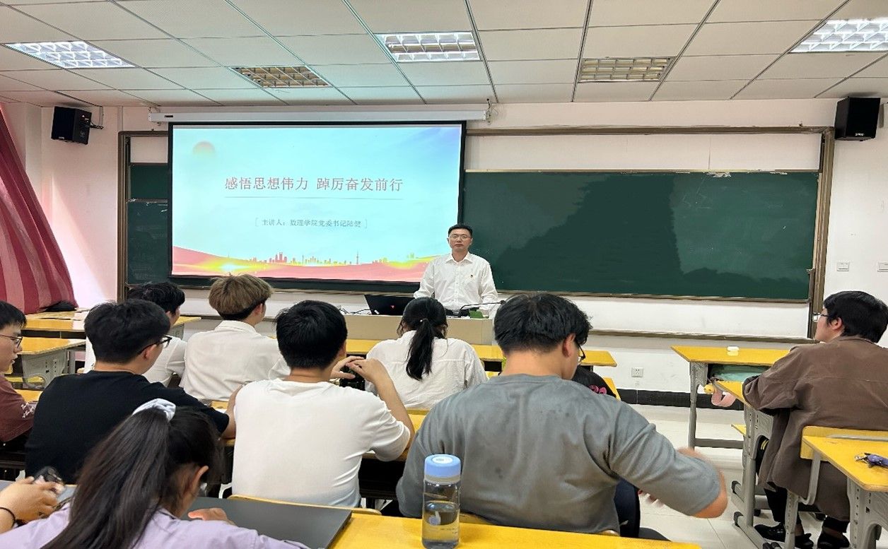 5月26日,数理学院党委书记陆健以“感悟思想伟力 踔厉奋发前行”为题讲授主题教育专题党课,院领导班子、统计与信计专业学生党支部、高等数学教师党支部和概率统计教师党支部全体党员参加。