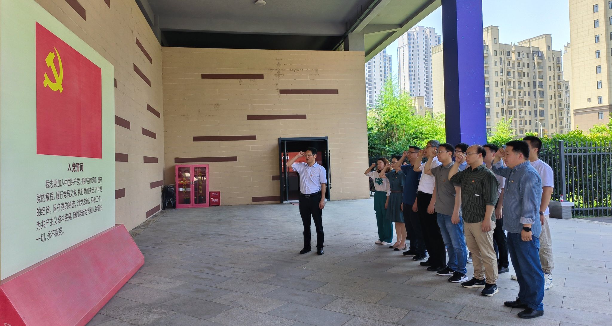 在邓稼先生平陈列馆,党员们通过参观邓稼先的手稿照片等珍贵资料,结合主题展厅和多媒体互动,全面深入了解了邓稼先的感人事迹和高尚情操, “忠诚、担当、奉献”的稼先精神凝聚了新时代筑梦伟大复兴的磅礴力量,让党员们受到了深刻的思想洗礼。参观结束后,全体党员在党支部书记的带领下重温入党誓词,坚定了全体党员为党为国奋斗的初心。