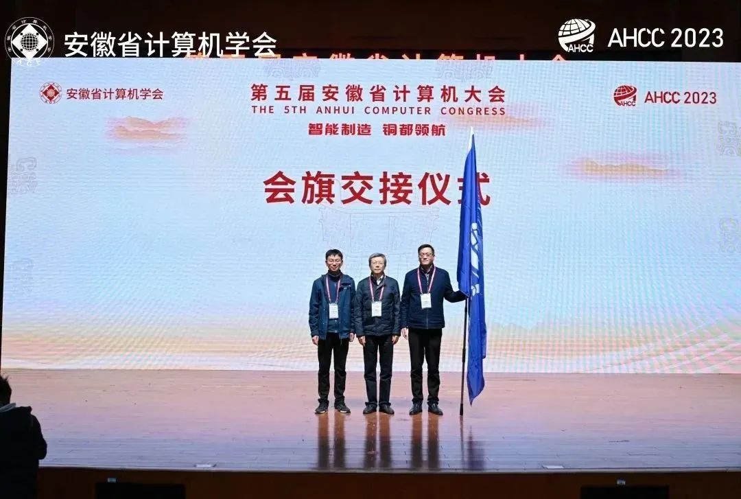 会上听取了安徽省计算机学会工作报告,并举行了会旗交接仪式,刘奎参加交旗仪式接受了会旗,并作为下一届大会的承办单位现场进行了表态发言。