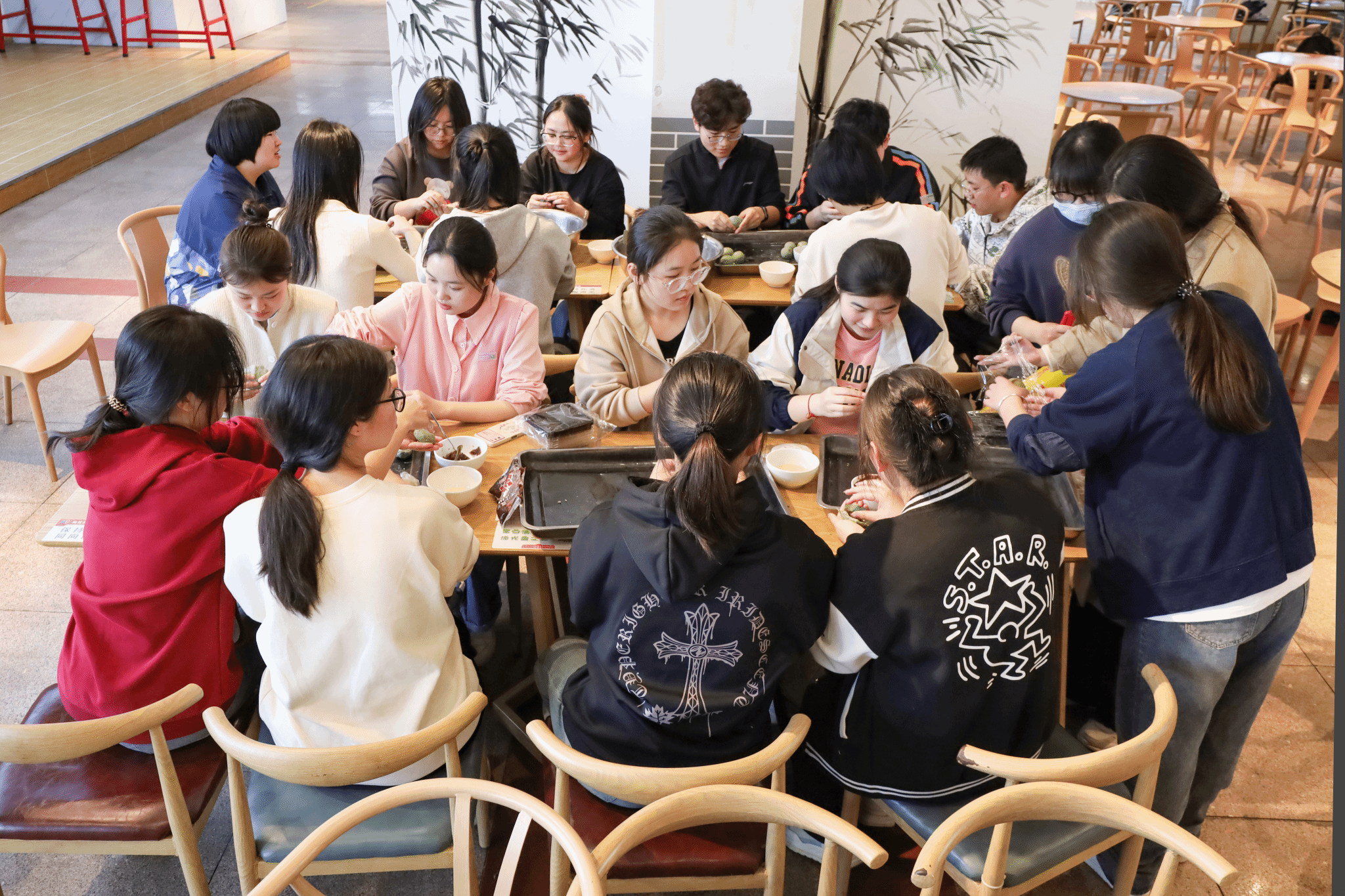 将粘米粉、小麦淀粉、青团艾草粉、热水按一定比例混合,再揉成团……食堂阿姨在一旁耐心指导,“要从外往中间画圈向里揉,最后要盖上保鲜膜等一会儿”,同学们也逐渐掌握了制作技巧,把面团揉成圆形,中间压出一个洞,以便填入豆沙等馅料。财务管理专业2022(2)班的刘远翮同学说:“青团又叫‘清明果’,寓意着对先人的缅怀和敬意。”