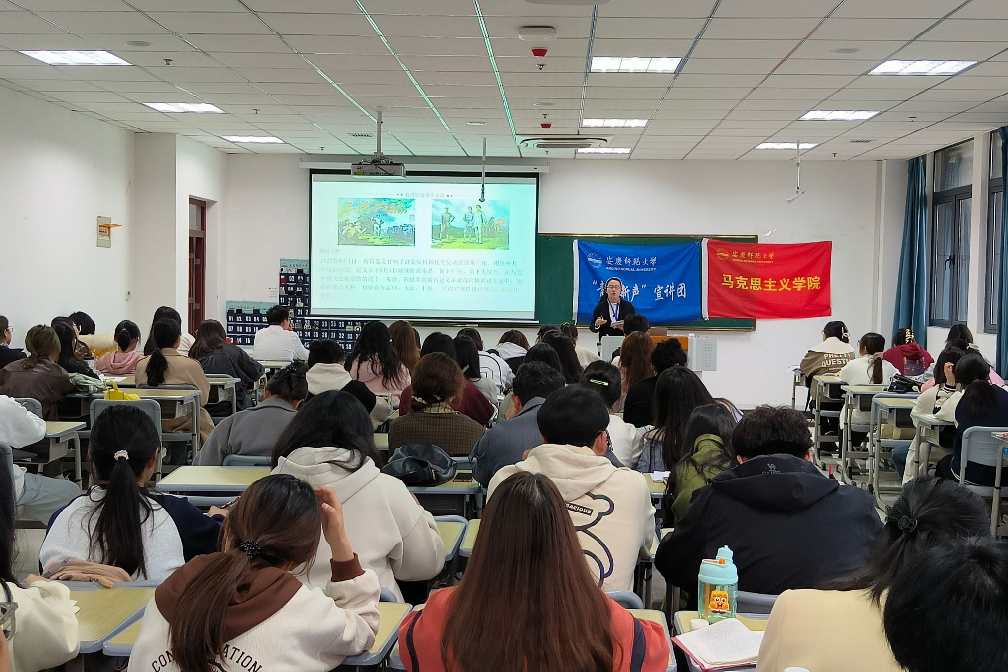 3月27日,“青年新声”宣讲团在Q楼308教室为马克思主义学院第四期“青马班”开展主题为“牢记‘三个务必’,走好新时代的赶考之路”和“以党的自我革命引领社会革命”的理论宣讲。马克思主义学院第四期青马班全体成员和第七期团校学员参加宣讲。