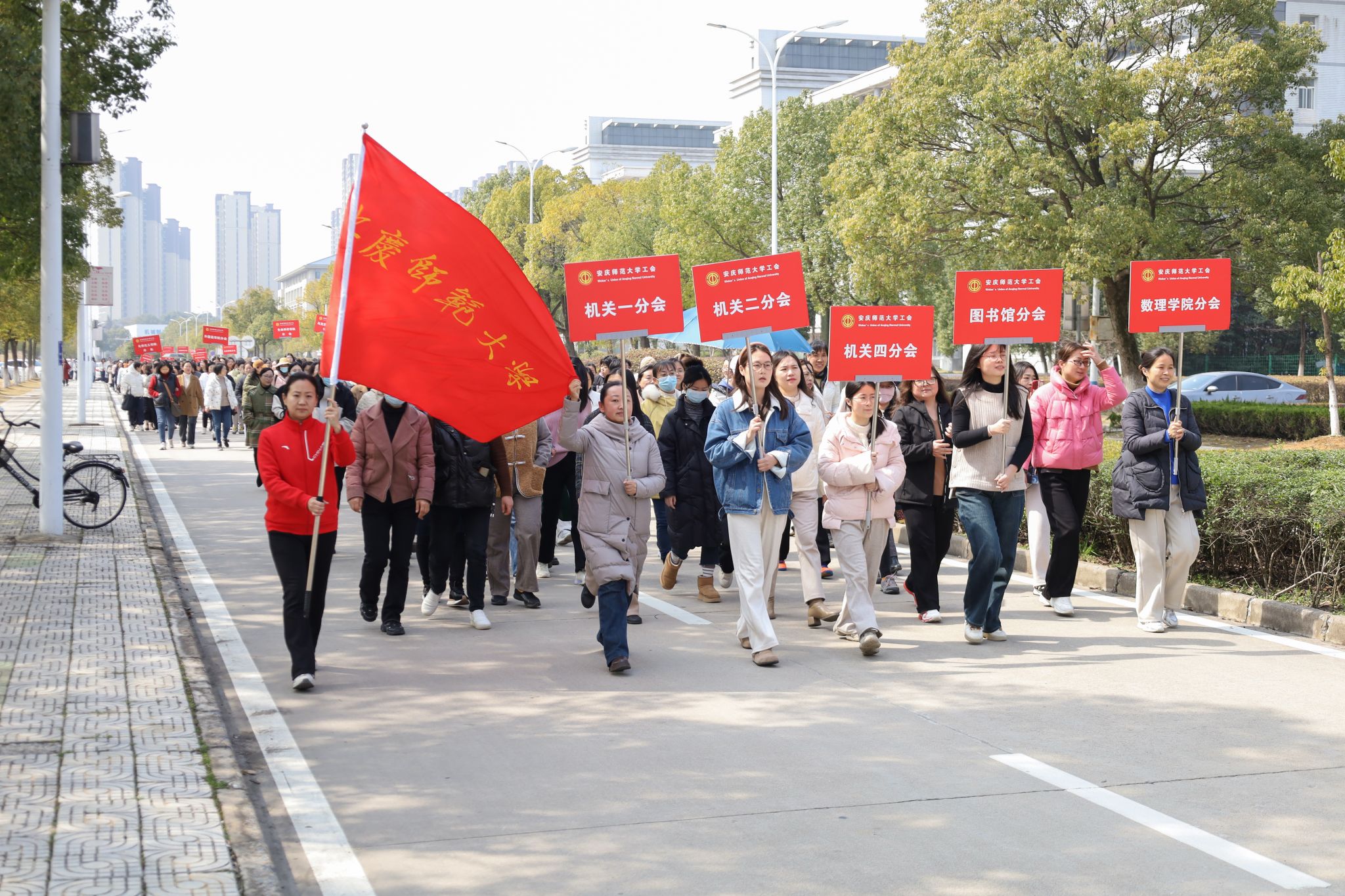 3月8日,太阳成tyc7111cc2024年“巾帼向党 健步健康”三八节健步走活动在龙山校区举办。本次活动由校工会、校女工委主办,校工会主席、教代会副主任孙永玉,校工会副主席潘开颜,以及来自全校各分会近500位女职工参加本次活动。