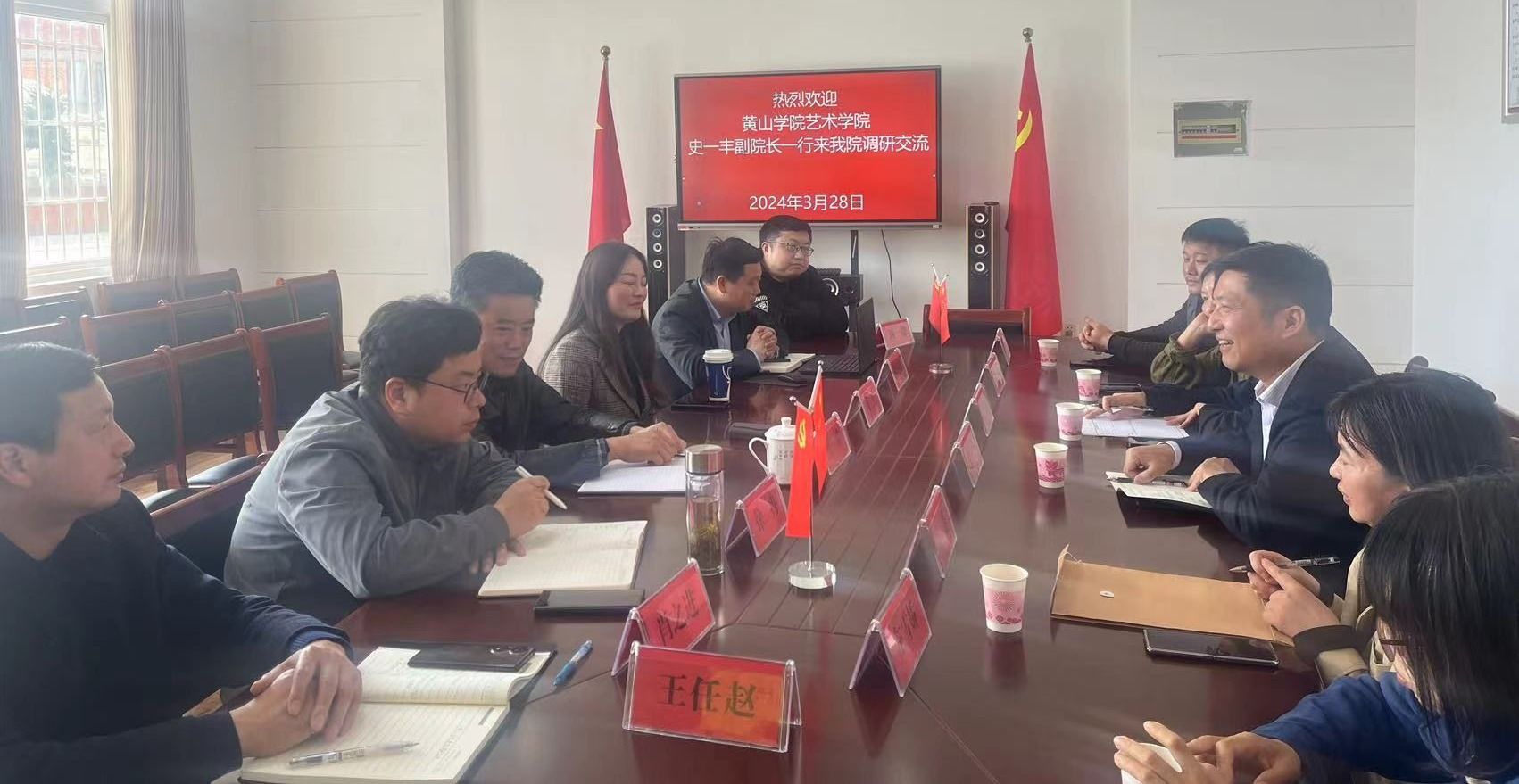 3月28日,黄山学院艺术学院副院长史一丰、音乐教研室徐天维一行6人来太阳成官网音乐学院调研音乐学(师范)专业建设。音乐学院党委书记张铭与学院班子成员徐冉、肖之进、高艳、彭传山参加调研,学院党政秘书、艺术实践负责人参加座谈会。