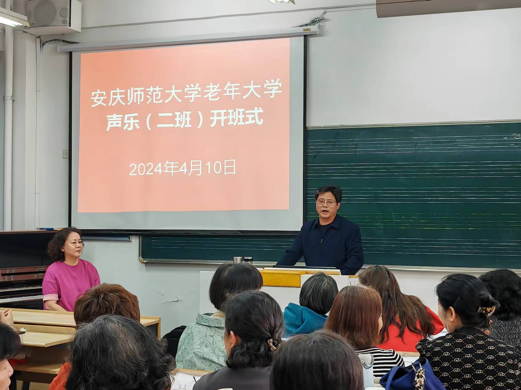 4月10日,30多位退休老同志怀着兴奋、喜悦的心情,走进音乐学院207教室,参加老年大学龙山校区声乐班开班式。