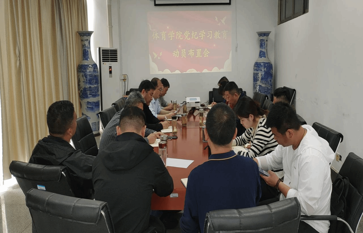 4月16日,体育学院在体育馆篮球学院会议室召开党纪学习教育动员布置会。学院党委班子成员、各党支部书记、纪委委员、行政相关人员参加会议。会议由学院党委副书记、纪委书记王玮主持。