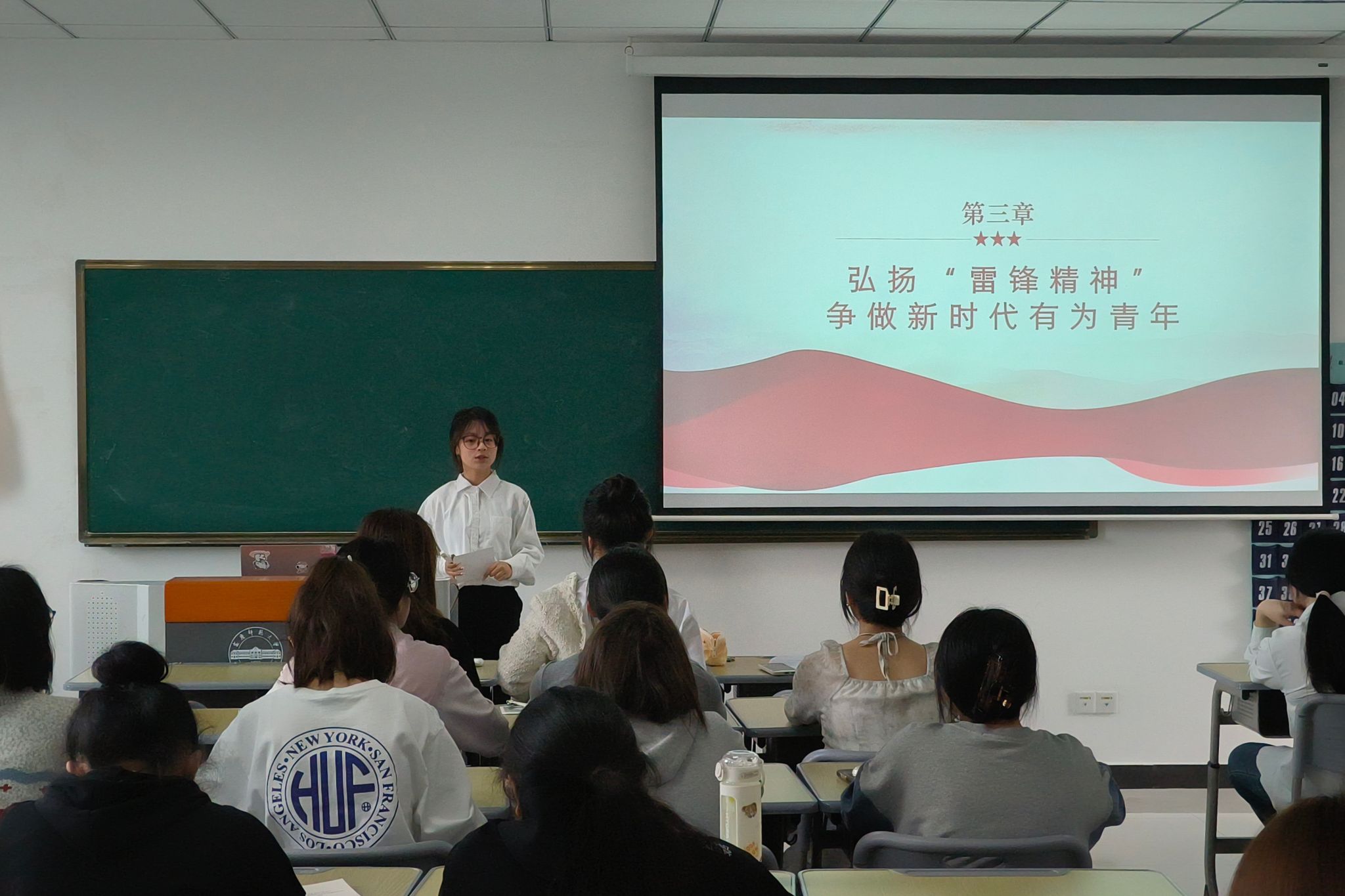 4月10日,大学生“青年新声”宣讲团在Q楼304教室开展以“雷锋精神,薪火相传”为主题的宣讲活动,马克思主义学院第七期团校学员参加宣讲。