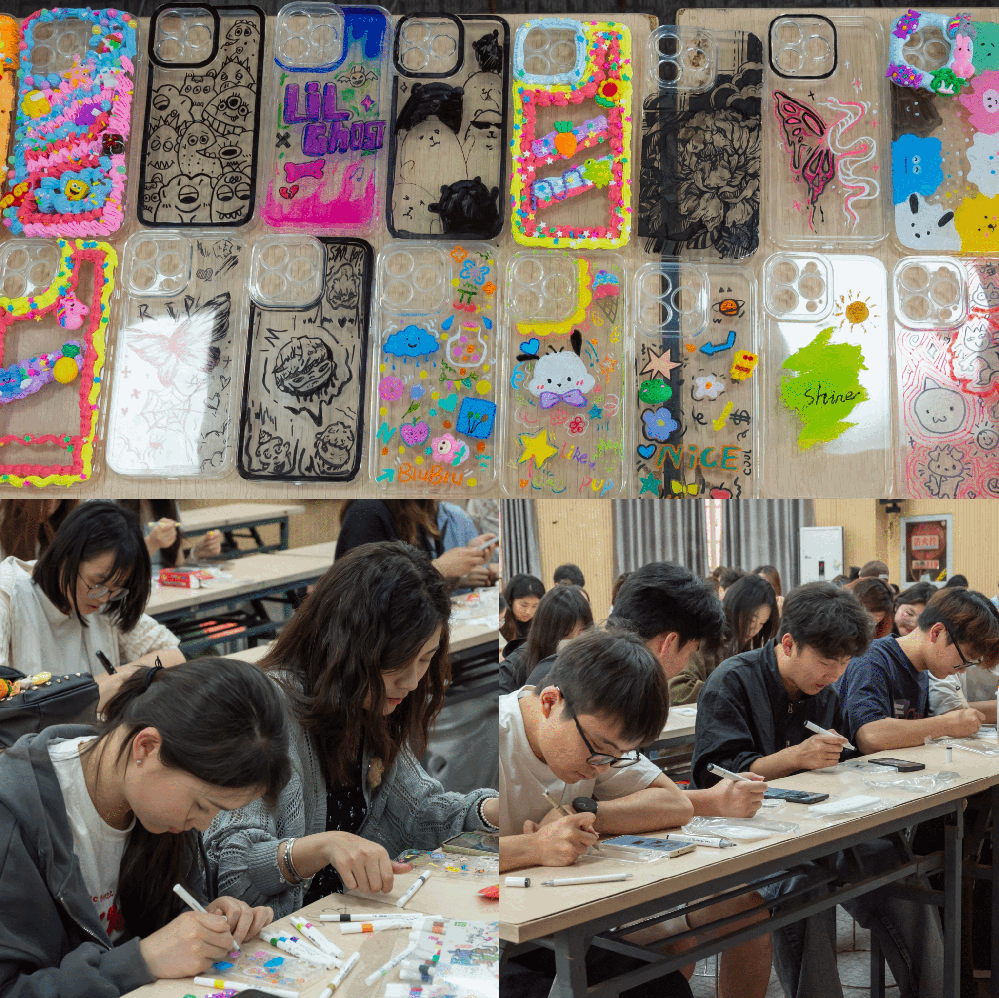 为了让学生拥有更佳的活动体验感,早在一周前,活动负责人、美术学专业2023(3)班的伍可凡便着手准备活动所需材料。“我们准备了几十个透明的手机壳,以及颜料和颜色各异的奶油胶,希望参与学生可以自由挑选,制作出自己喜欢的手机壳。”伍可凡表示,活动开始前,她还号召参与学生自己携带一些“趁手”的工具,方便在手机壳上更细致地作画。