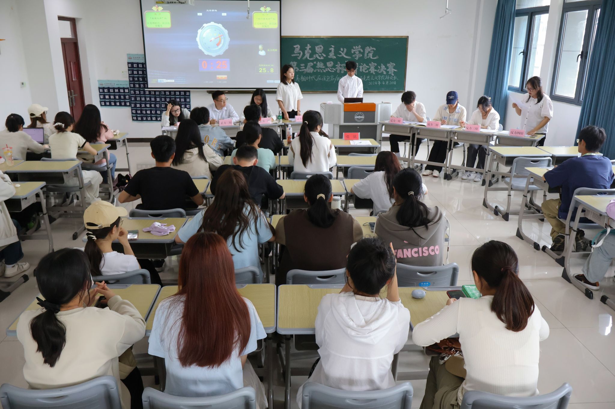4月20日,马克思主义学院举办第三届“热思杯”辩论赛决赛。50余名学生到场参与活动。
