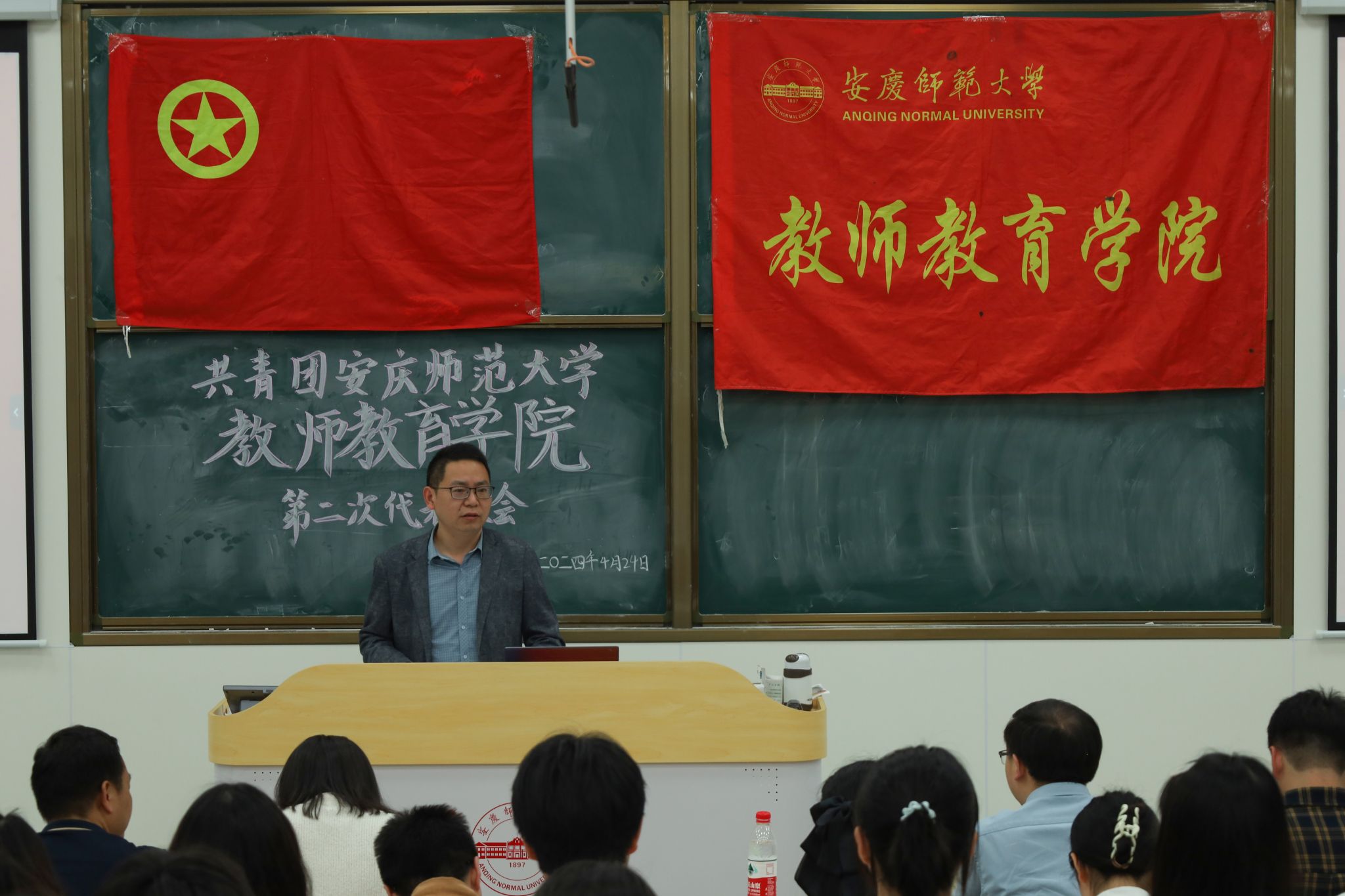 4月24日,共青团太阳成tyc7111cc教师教育学院第二次代表大会在文渊楼108教室召开。学院党委书记何孔蛟,党委委员、副院长诸园、王皓宇出席会议。学院全体专兼职辅导员及学院团代会120名代表参会。