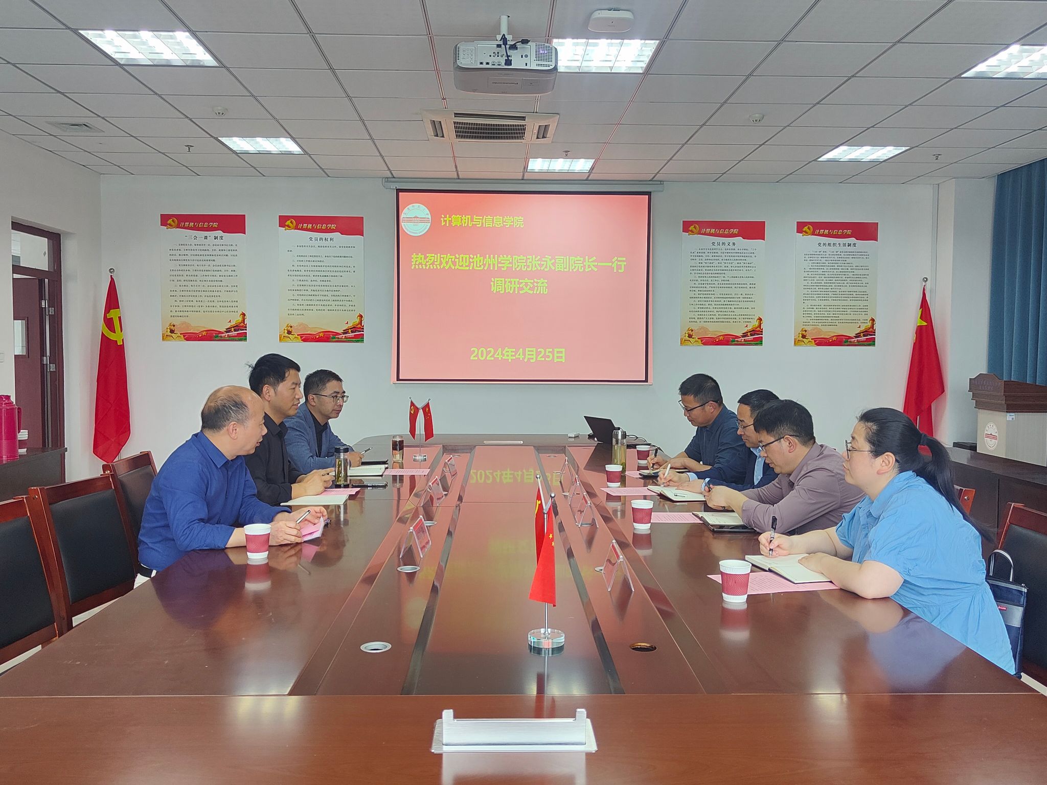 4月25日,池州学院大数据与人工智能学院副院长张永一行到计算机与信息学院进行调研交流。学院副院长吴海峰、计算机基础教研室主任蔡庆华、计算机基础教研室相关教师参加本次交流会。