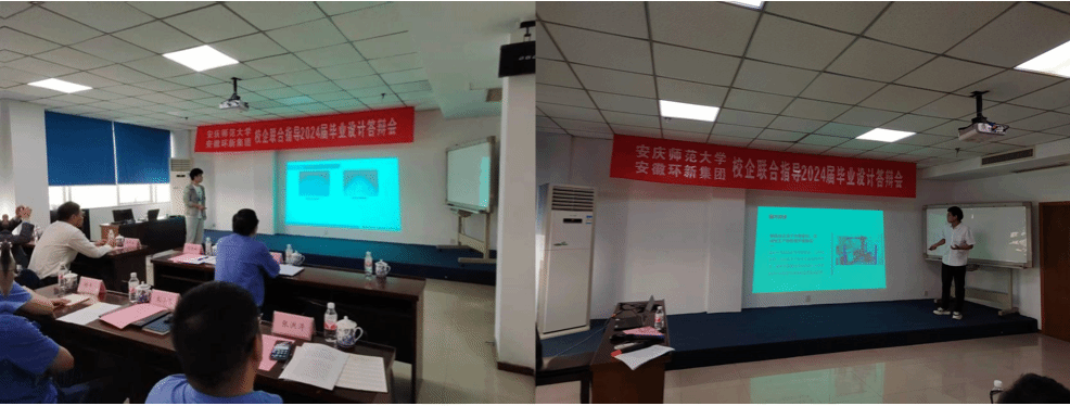 参与此次答辩同学的毕业实习、毕业设计均实行双导师制指导,并已在安徽环新集团就业。毕业设计选题由企业指导教师根据企业生产线的技改或产品设计需求拟定,由校企双方指导教师审定,设计过程和论文的撰写由校企双方导师联合指导完成。