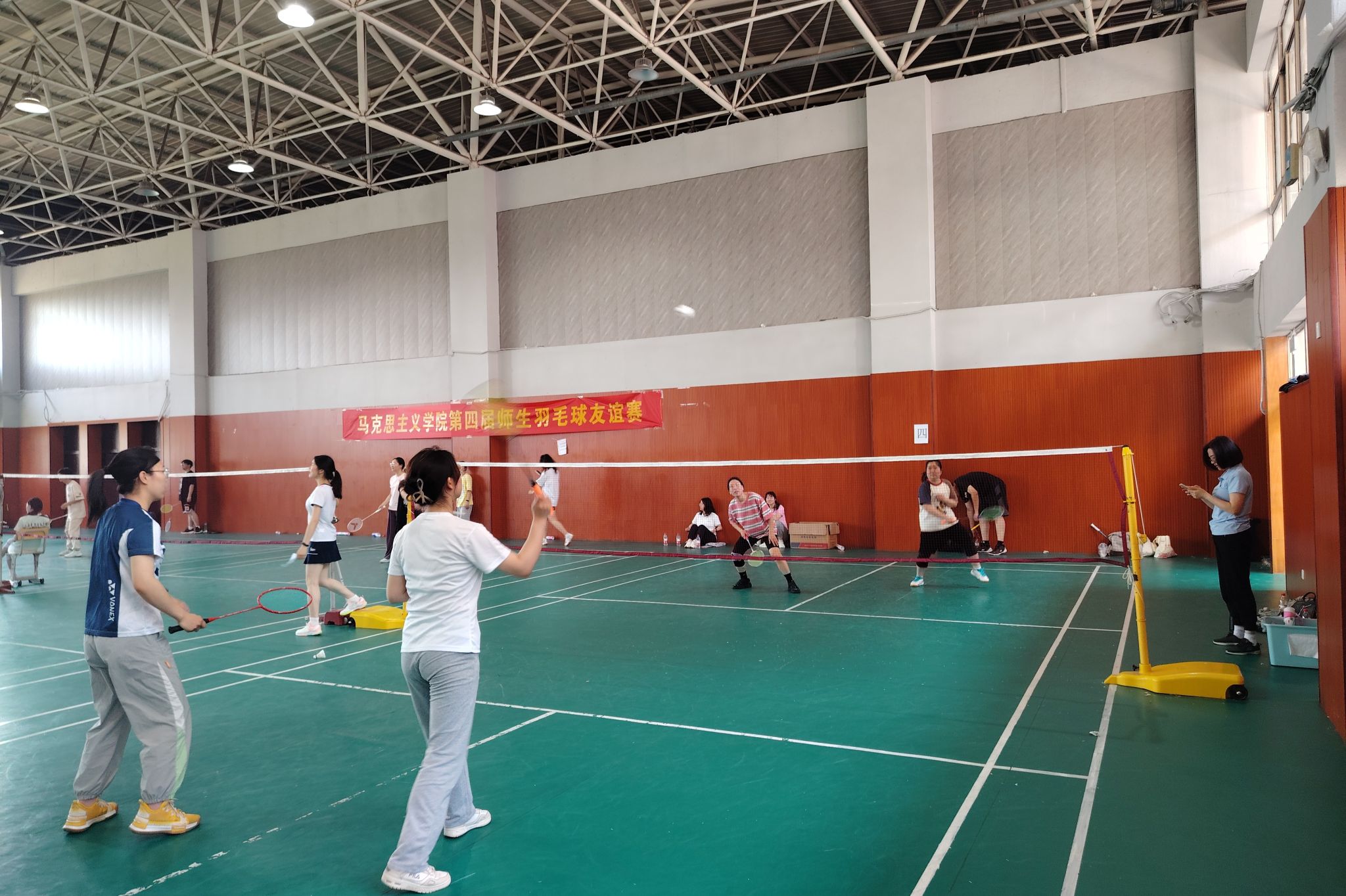 5月18日,马克思主义学院在体育馆二楼羽毛球馆开展以“展羽健魅力,享运动活力”为主题的第四届师生羽毛球友谊赛。学院师生100余人参加。