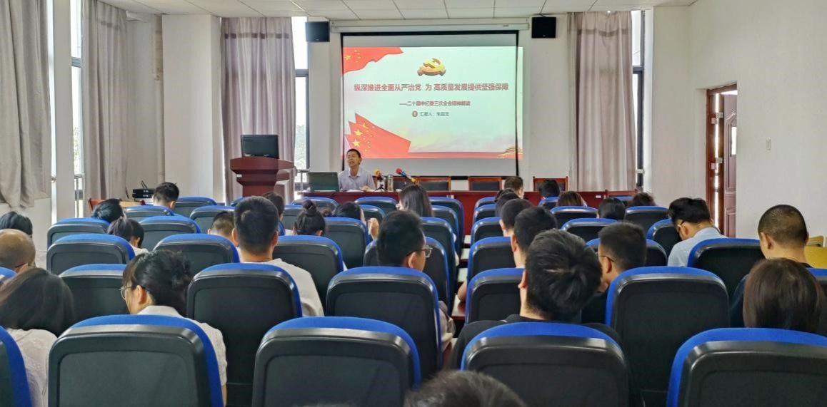 朱昌流从总结全面从严治党的新进展新成效、深刻阐述党的自我革命的重要思想、明确“九个以”的实践要求、对纵深推进反腐败斗争作出战略部署、为高质量发展提供坚强保障五个方面对二十届中纪委三次全会精神进行细致解读。