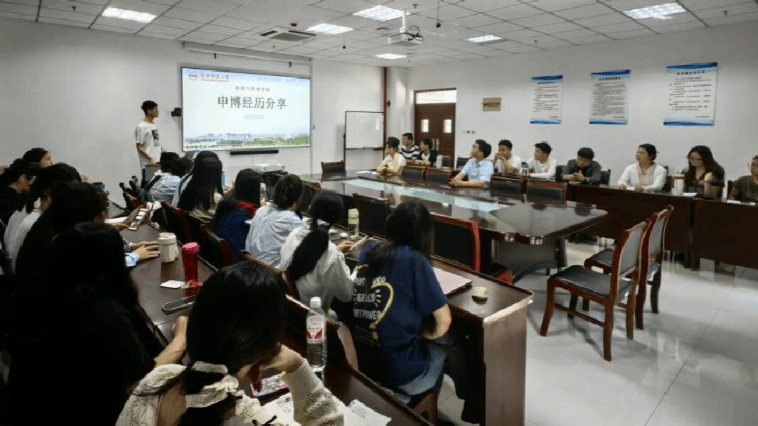 5月28日,经济与管理学院研究生党支部在经管楼M-103教室举办“研途明灯,博公共鉴”主题党日活动。支部邀请张飞杨、韩晓琳、彭景3位毕业生作考博考公经验交流分享。经济与管理学院副院长徐俊杰、支部全体党员、发展对象、入党积极分子和共青团员等参会。