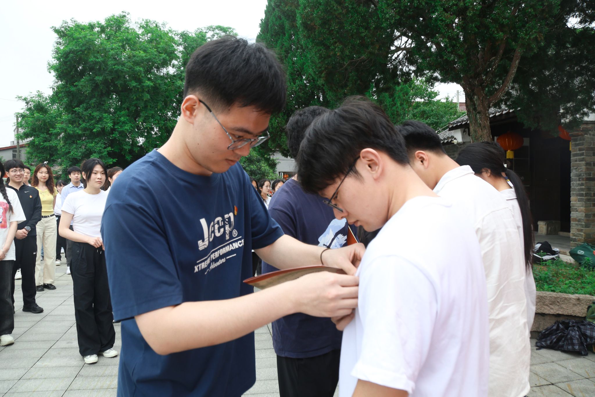 庄严肃穆的入党宣誓仪式后,老党员代表缓步走到新党员代表的面前,为其佩戴党徽并发放政治生日卡。老党员代表用双手拿起党徽别在新党员代表的胸前,调整党徽的位置,确保它端正地佩戴在左胸中央。“这是我第一次作为老党员代表为新党员佩戴党徽,作为一名即将离校的毕业生党员,我感到无比神圣,一股传承之感油然而生。”毕业生党员王娜表示,党的事业需要一代代人接力奋斗,而新党员就是这份事业的新希望、新力量。