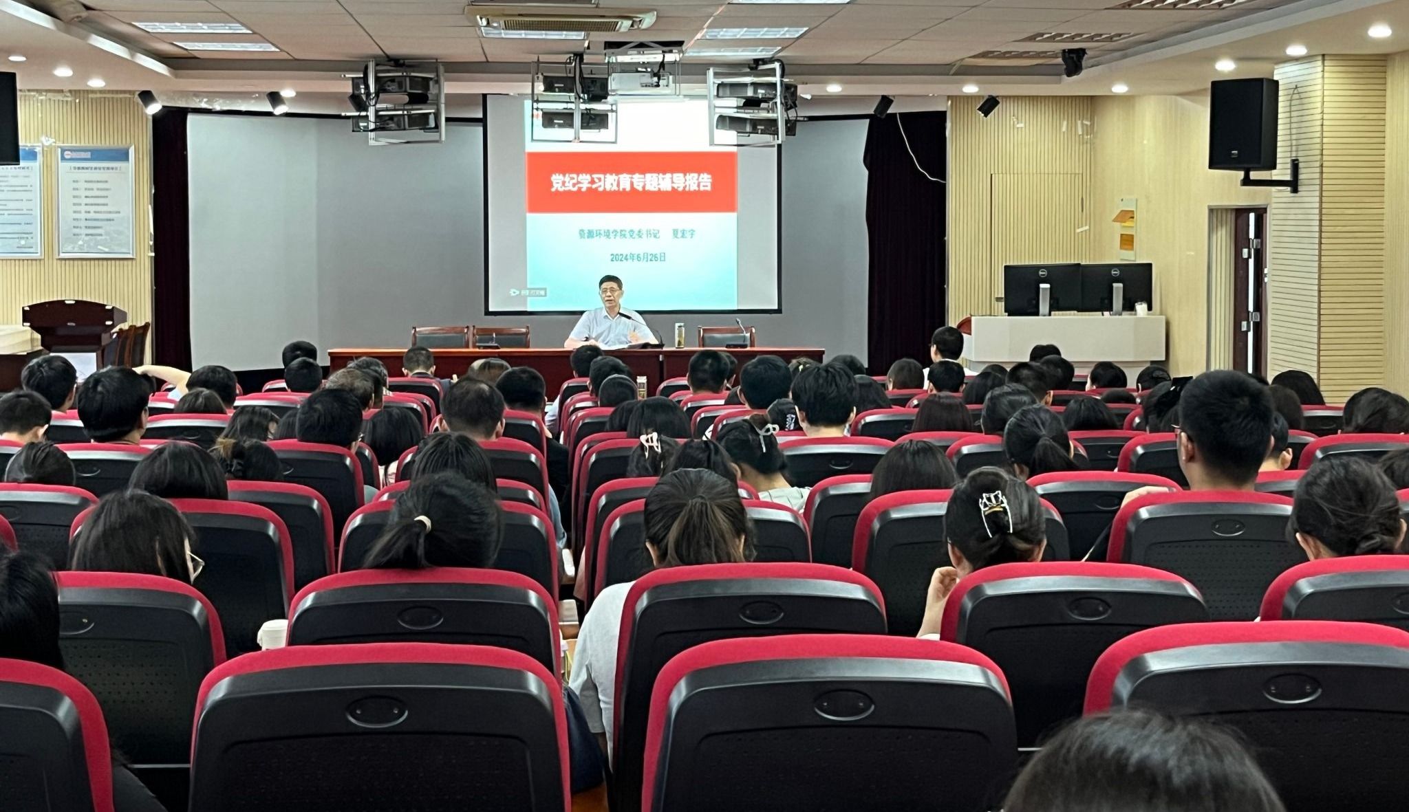 6月26日,资源环境学院举办党纪学习教育专题辅导报告会。学院党委书记夏宏宇以“学习党规党纪,增强纪律观念”为主题对《中国共产党纪律处分条例》进行专门讲解。学院班子成员和全体师生党员参加学习。