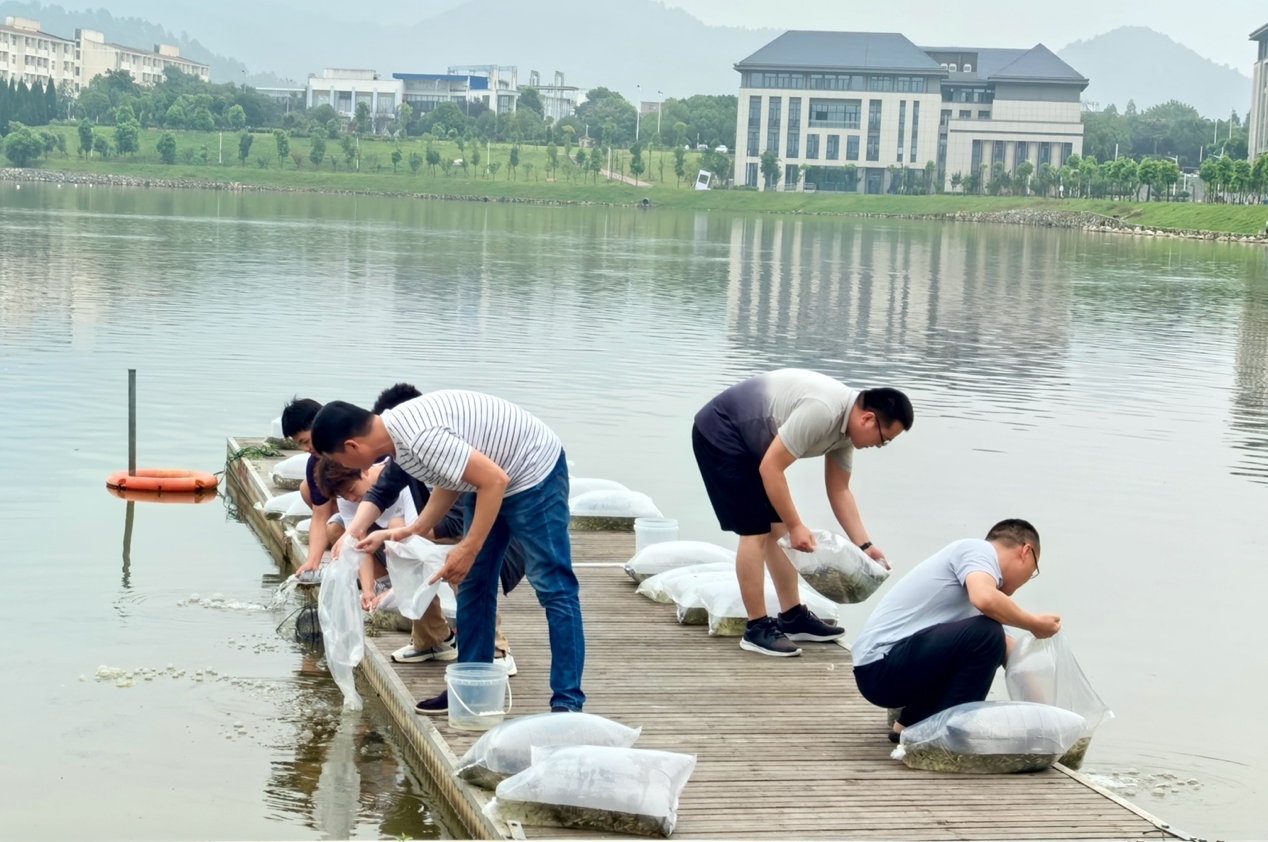 7月12日,基建与后勤管理处联合生命科学学院开展双龙湖水域增殖放流活动,促进双龙湖水域生态资源可持续发展。基建与后勤管理处、生命科学学院部分教师、学生代表参加此次活动。