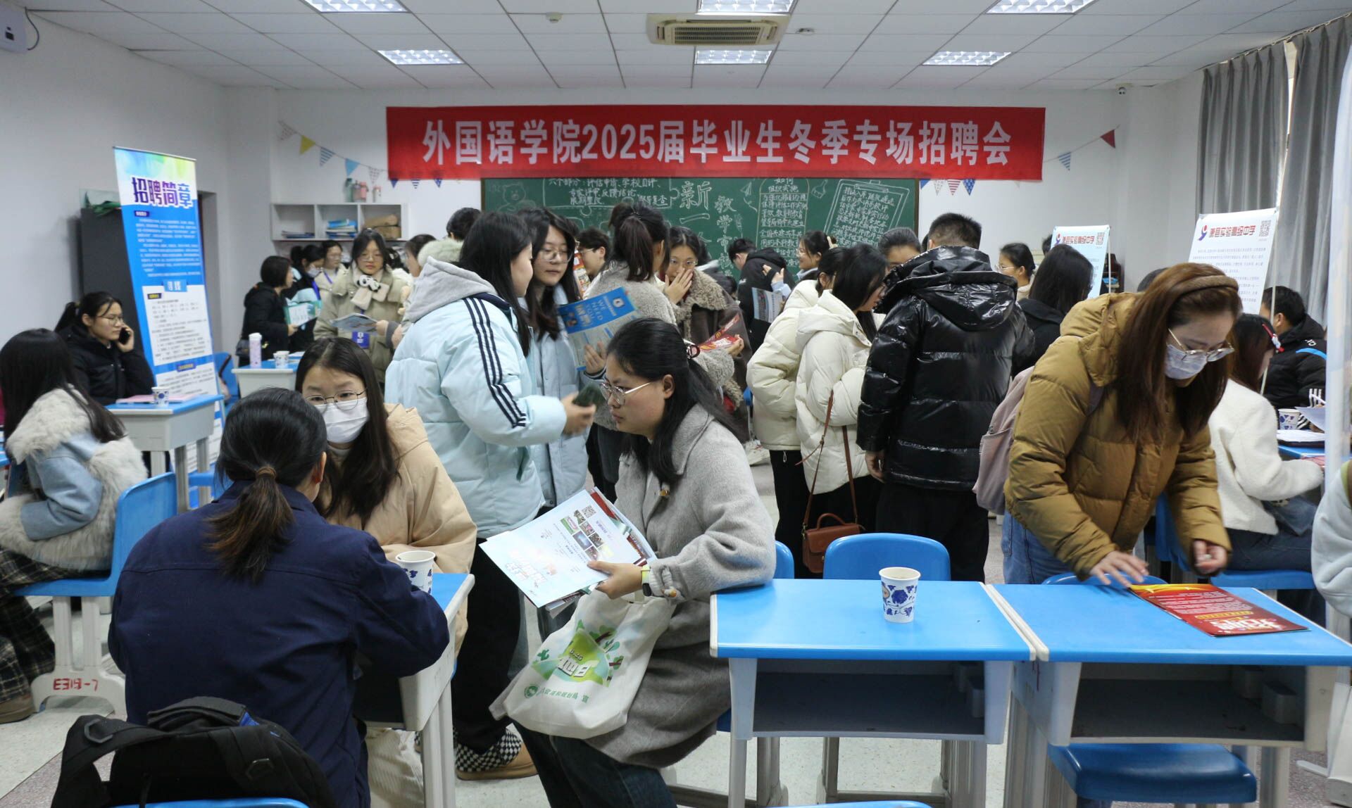 12月25日,外国语学院在E203举办2025届毕业生冬季专场招聘会,萧县实验高级中学、寿县万瑞中学、合肥新东方、上海东方教育学校、江苏朗恩斯科技股份有限公司、北京贝仕特国际教育科技有限公司等11家用人单位来院招聘人才,为应届毕业生提供了丰富多样的就业岗位,吸引了百余名毕业生参加此次招聘会。