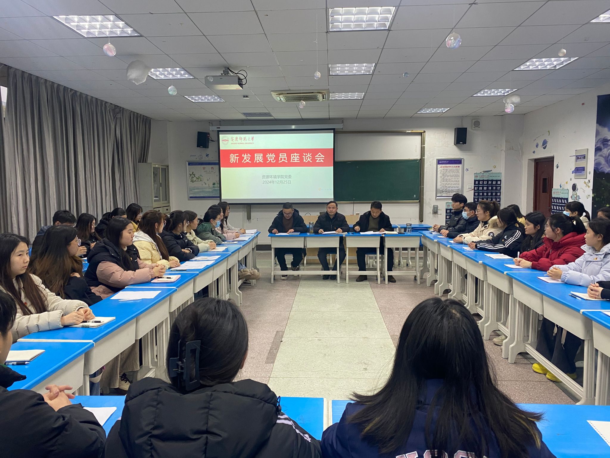 12月25日,资源环境学院召开新发展党员座谈会。资源环境学院党委书记夏斐、党委副书记黄建平、学生支部书记和42名新发展党员参会。