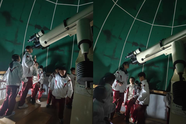 指导教师刘峰为同学们带来了一场生动有趣的天文科普。他用通俗易懂的语言,介绍了“七星连珠”现象的成因,如何使用观星软件和天文望远镜,增强了学生的空间感知力和对科学的探索精神,激发了他们对宇宙探索的无限向往。