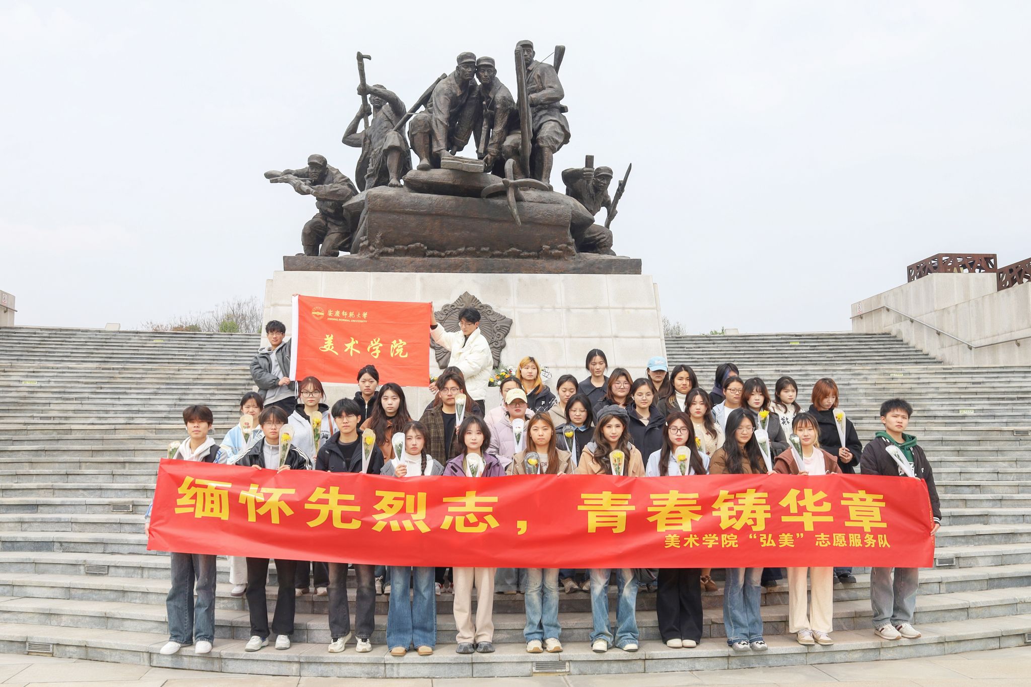 清明时节的安庆市烈士陵园里,一簇簇手折素纸花与黄白菊蕊在春风中静默低垂。3月30日,美术学院80余名学生带着历时多日创作的百余件手作祭奠花笺与鲜花,在苍松掩映的烈士长眠之地致敬革命先烈,传承红色基因。