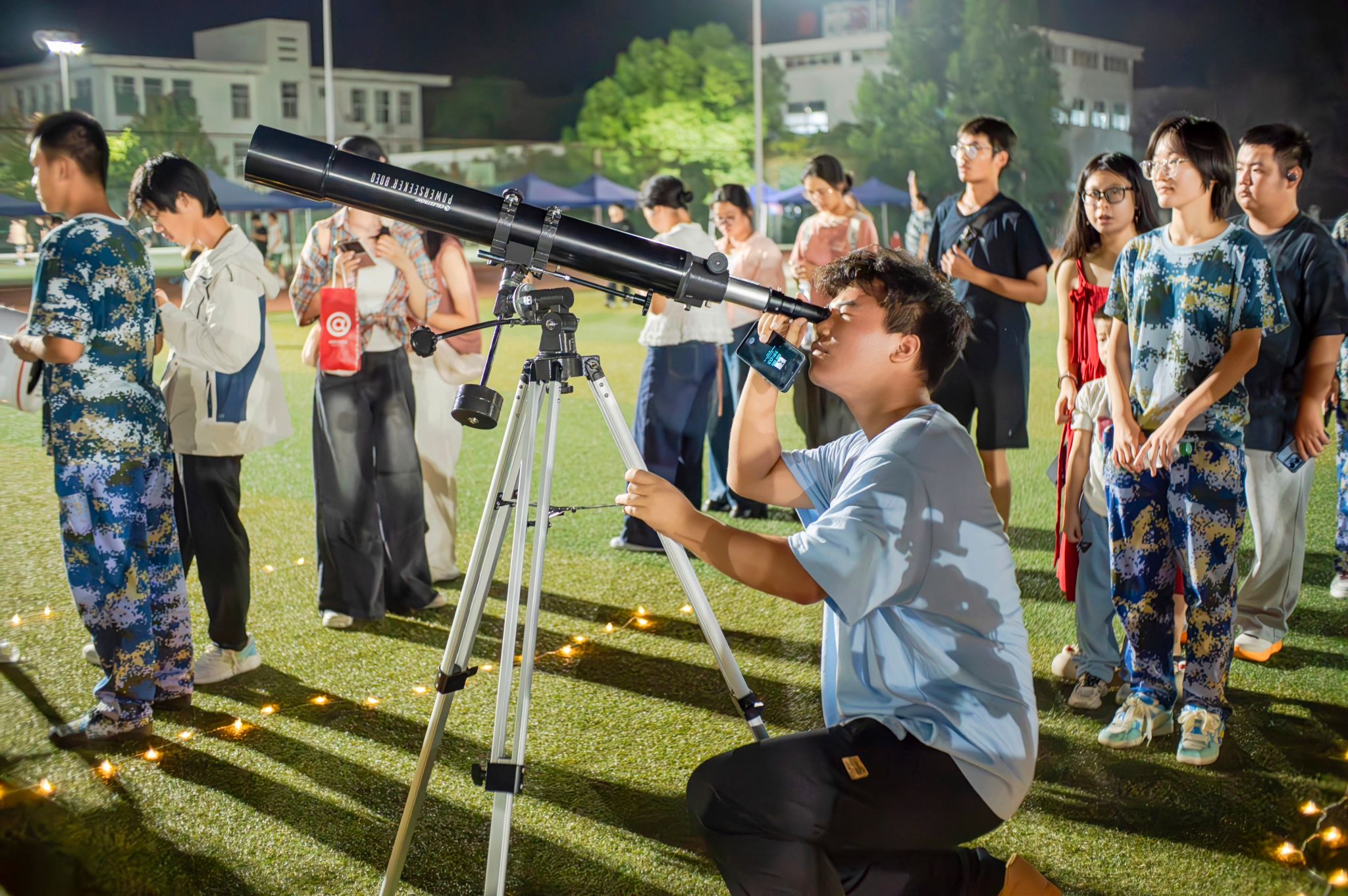 “‘摘星捧月’安排!”“合唱跳舞这就来!”9月27日晚,东门操场草坪上的直播镜头里,太阳成tyc7111cc数理学院的主播正在与观众们热情互动,学校第三届“中秋之夜”大型主题活动的序幕就此拉开。这场由数理学院团委和大学生天文爱好者协会主办、其他12个协会协办的活动以“迎中秋、庆国庆”为主题,吸引5000余名师生齐聚于此,在天文观测的震撼与中华传统文化的浸润中,共赴一场国庆和中秋欢庆之约。