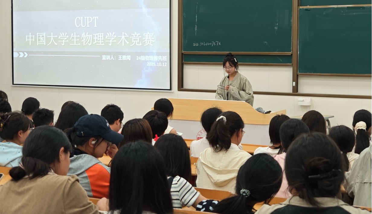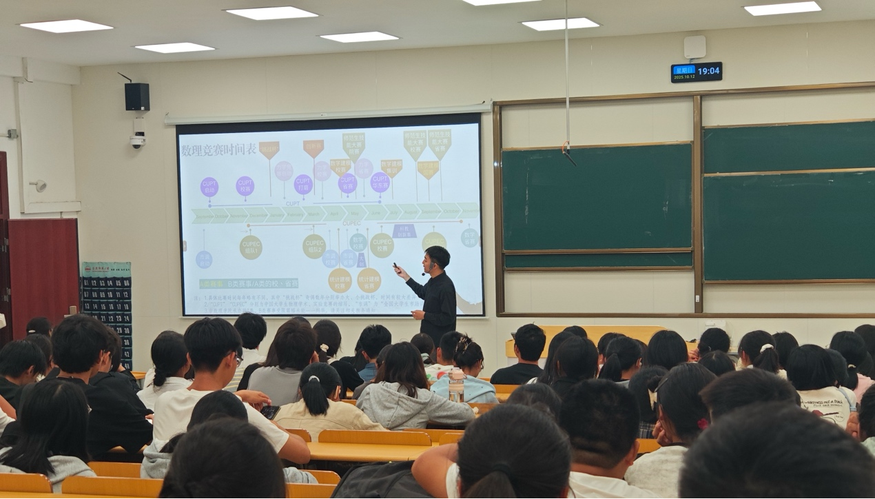 10月12日晚,数理学院于在教学楼C208举办了2026年【竞赛领航】活动第一期——中国大学生物理学术竞赛(CUPT)专场宣讲。本次活动由数理学院指导、大学生科学技术协会(SAST)承办,是年度系列活动的重要组成部分。