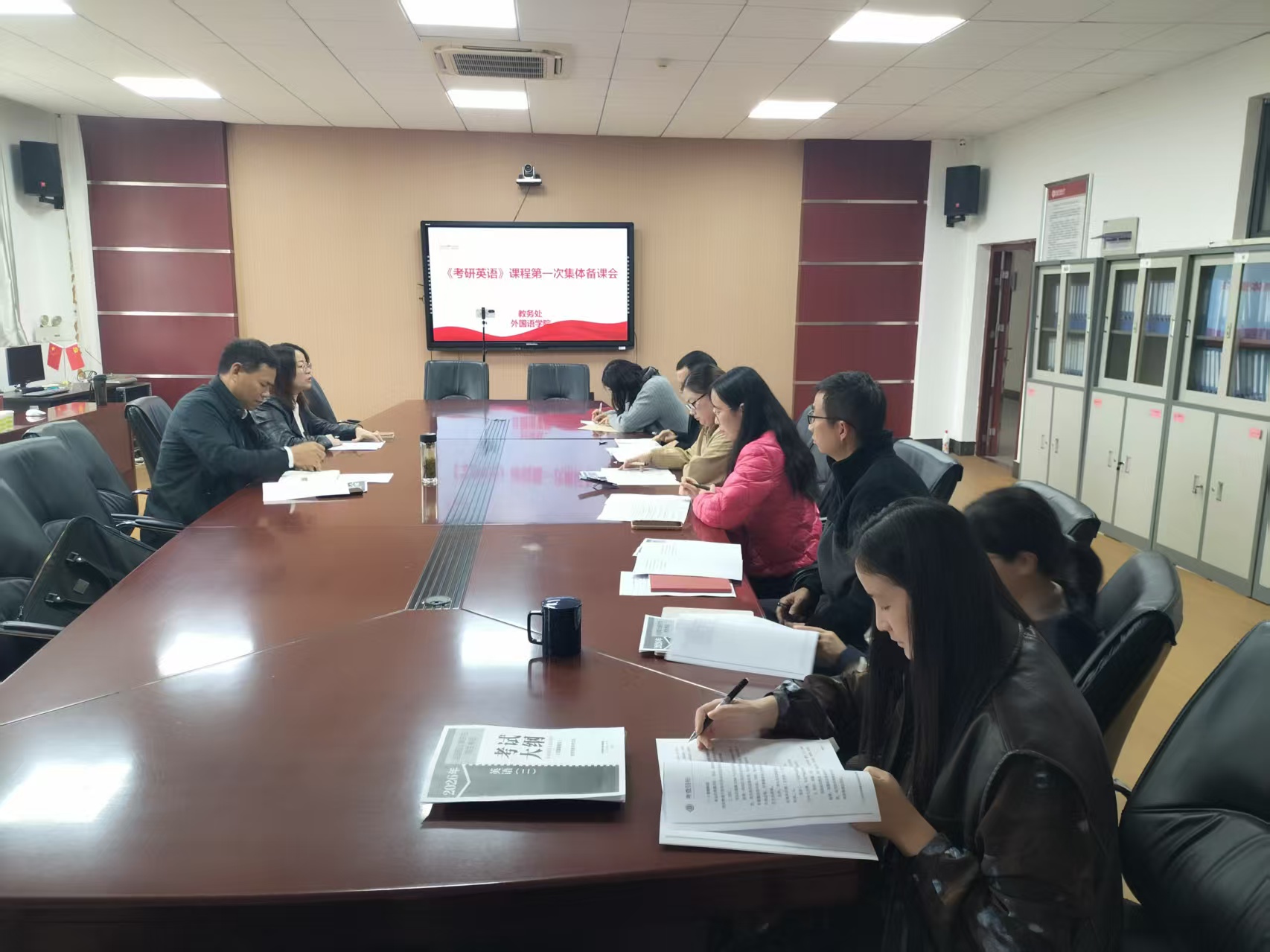 11月7日下午,外国语学院在E304会议室组织召开《考研英语》课程首次备课会。教务处处长潘锦云、外国语学院副院长瞿宁霞、《考研英语》授课教师团队及教务科全体成员参与备课研讨。会议由瞿宁霞主持。