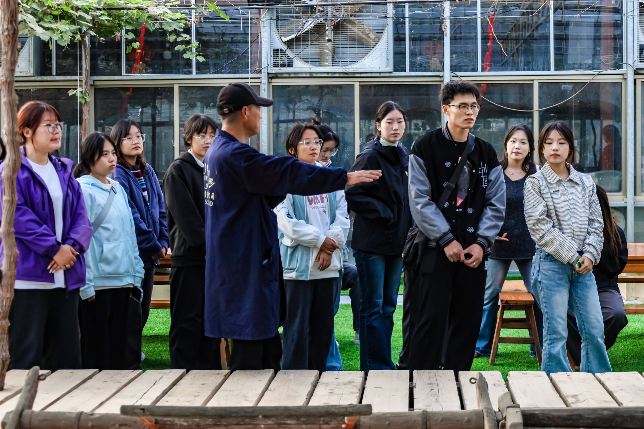 走进百果园,讲解员指着对应的玻璃房介绍,“这是巨峰葡萄,它是最古老、传统的品种,这边是阳光玫瑰,素有‘葡萄中的劳斯莱斯’之美誉……”学生们边听边问,兴致盎然。“比起实验室里的操作,亲手修剪枝条、观察植物生长显得格外生动。”应用统计学2022(2)班的袁华清感叹,“技术员说挑选葡萄要选松散的果串,而不是特别紧实的、长得特别漂亮的,这完全颠覆了我以往专挑紧密果串的认知!”