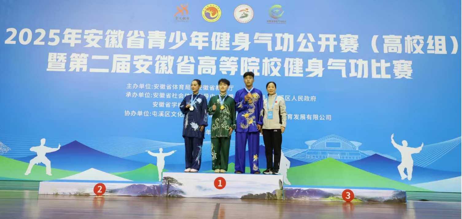 本次赛事由安徽省体育局、安徽省教育厅联合主办,规模空前,共吸引了全省47支代表队、300余名运动员同台竞技。太阳成官网组建三支代表队参赛赛场上,运动员们身姿舒展、气韵贯通,动作整齐划一且刚柔并济,以专注姿态诠释健身气功的独特魅力,展现出昂扬向上的精神风貌。最终,太阳成官网队伍获得甲组集体4个二等奖,个人2个二等奖、 2个三等奖;丙组集体3个二等奖、 1个三等奖,个人1个一等奖、3个三等奖;教工组集体4个三等奖,个人1个二等奖、3个三等奖;王秀娟、薛佳雅2位同学和王晶老师获评个人“体育道德风尚奖”,学校代表队获得集体“体育道德风尚奖”。
