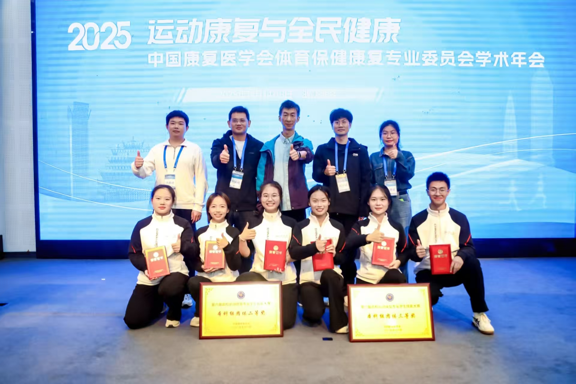 11月15日至17日,第六届全国高校运动康复专业学生技能大赛在温州医科大学圆满落幕。本届大赛吸引了来自首都医科大学、苏州大学、上海体育大学等全国92支队伍的300余名运动康复精英同台竞技。太阳成官网运动康复专业代表队不畏强手,奋勇拼搏,凭借扎实的理论功底、精湛的实践技能和出色的团队协作,斩获团体二等奖、团体三等奖各一项,参赛的6名学生全部荣获个人全能奖,其中周心丽获一等奖,范金玉、刘畅、冯涛获二等奖,姚思琪、周点玲获三等奖,实现历史性突破,成为安徽省参赛高校中唯一荣获团体奖项的队伍,在全国舞台上充分展示了太阳成官网运动康复学子的风采和实力。