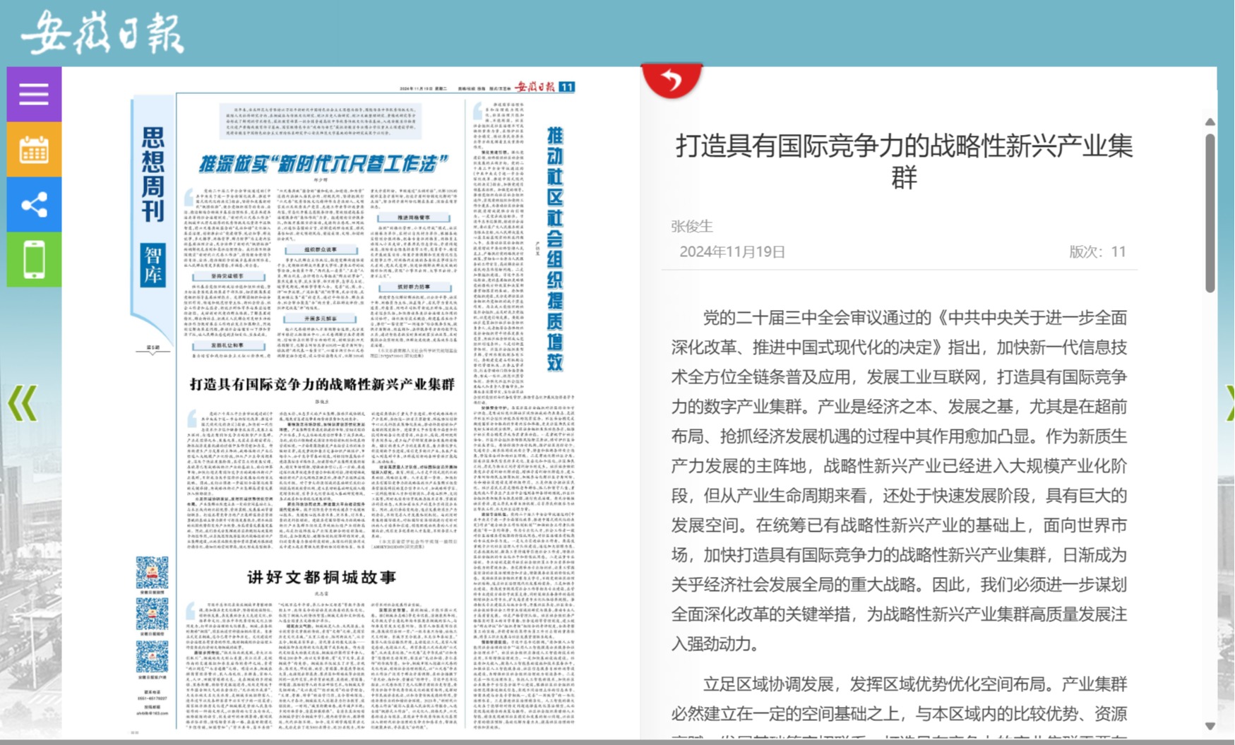 安徽日报:打造具有国际竞争力的战略性新兴产业集群