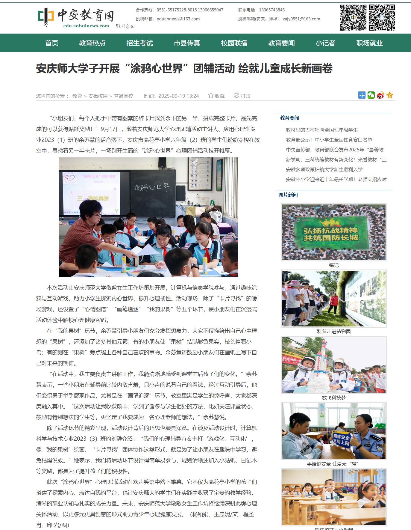 【中安教育网】安庆师大学子开展“涂鸦心世界”团辅活动 绘就儿童成长新画卷http://edu.anhuinews.com/ahxy/ptgx/202509/t20250919_8792835.html