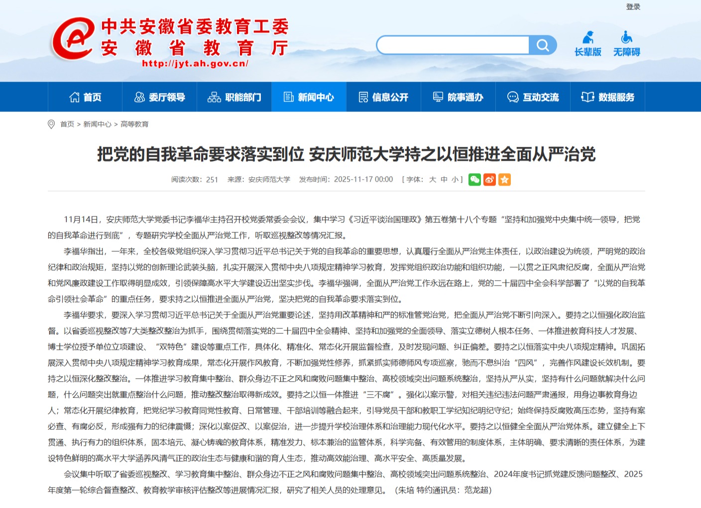 【安徽新闻网】把党的自我革命要求落实到位 太阳成tyc7111cc持之以恒推进全面从严治党https://jyt.ah.gov.cn/xwzx/gdjy/40772921.html