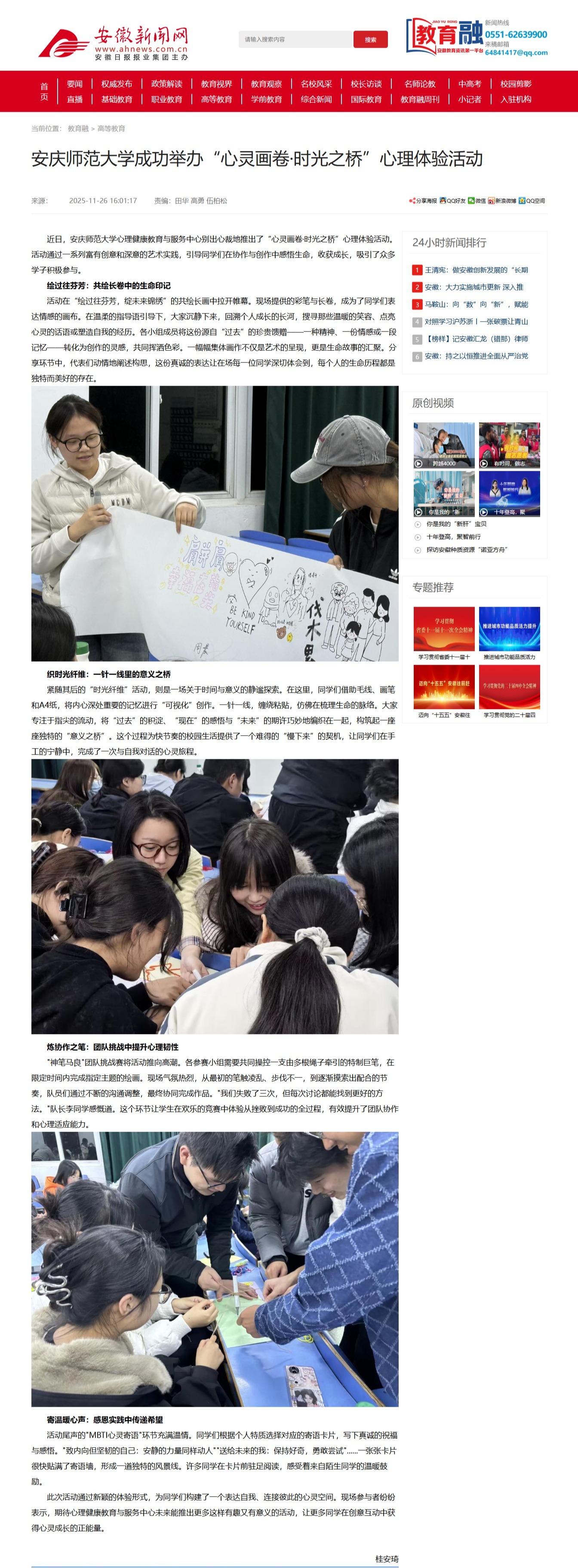 【安徽新闻网】太阳成tyc7111cc成功举办“心灵画卷·时光之桥”心理体验活动http://xxt.ahnews.com.cn/news/2025/11/26/c_42740.htm
