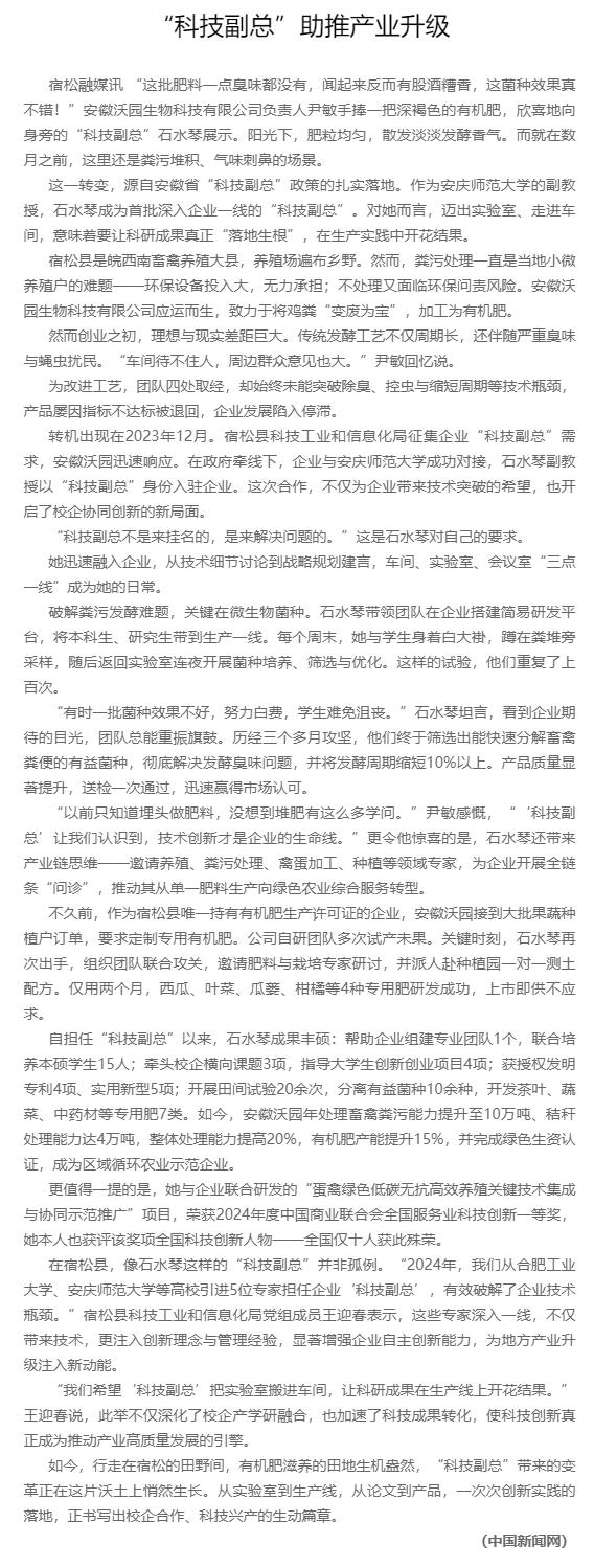 下一篇:中新网:“科技副总”助推宿松产业升级