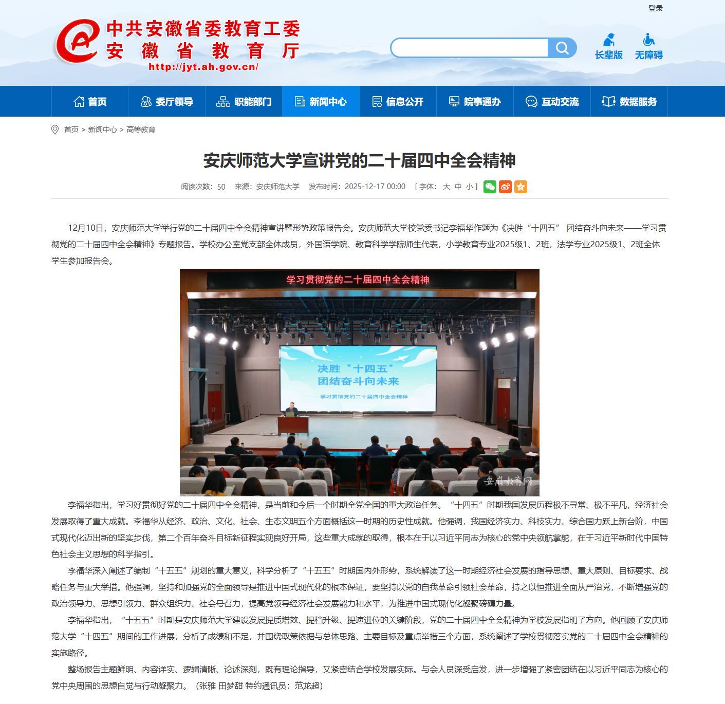 【安徽教育网】太阳成tyc7111cc宣讲党的二十届四中全会精神https://jyt.ah.gov.cn/xwzx/gdjy/40776794.html
