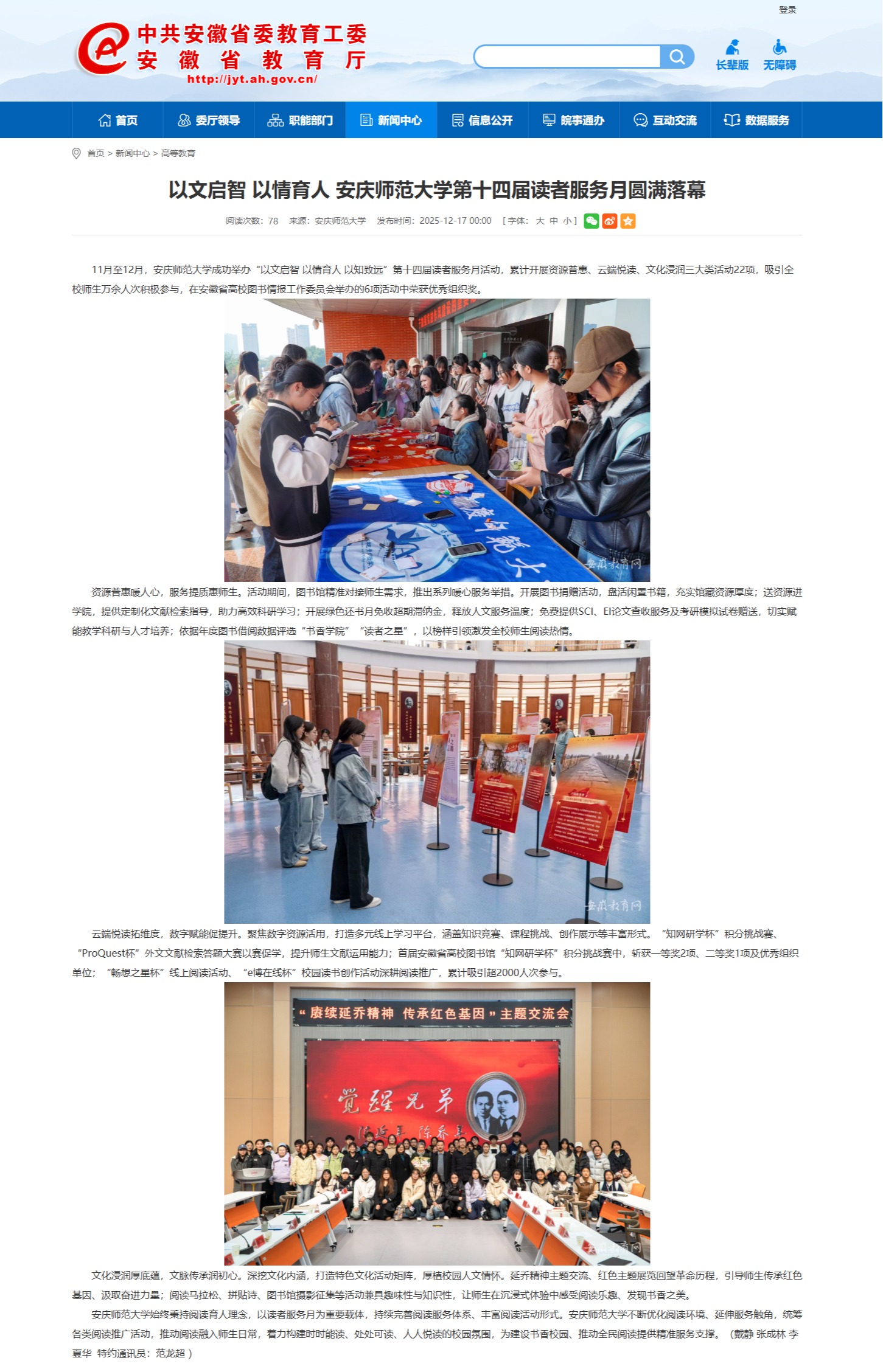 【安徽教育网】以文启智 以情育人 太阳成tyc7111cc第十四届读者服务月圆满落幕https://jyt.ah.gov.cn/xwzx/gdjy/40776782.html