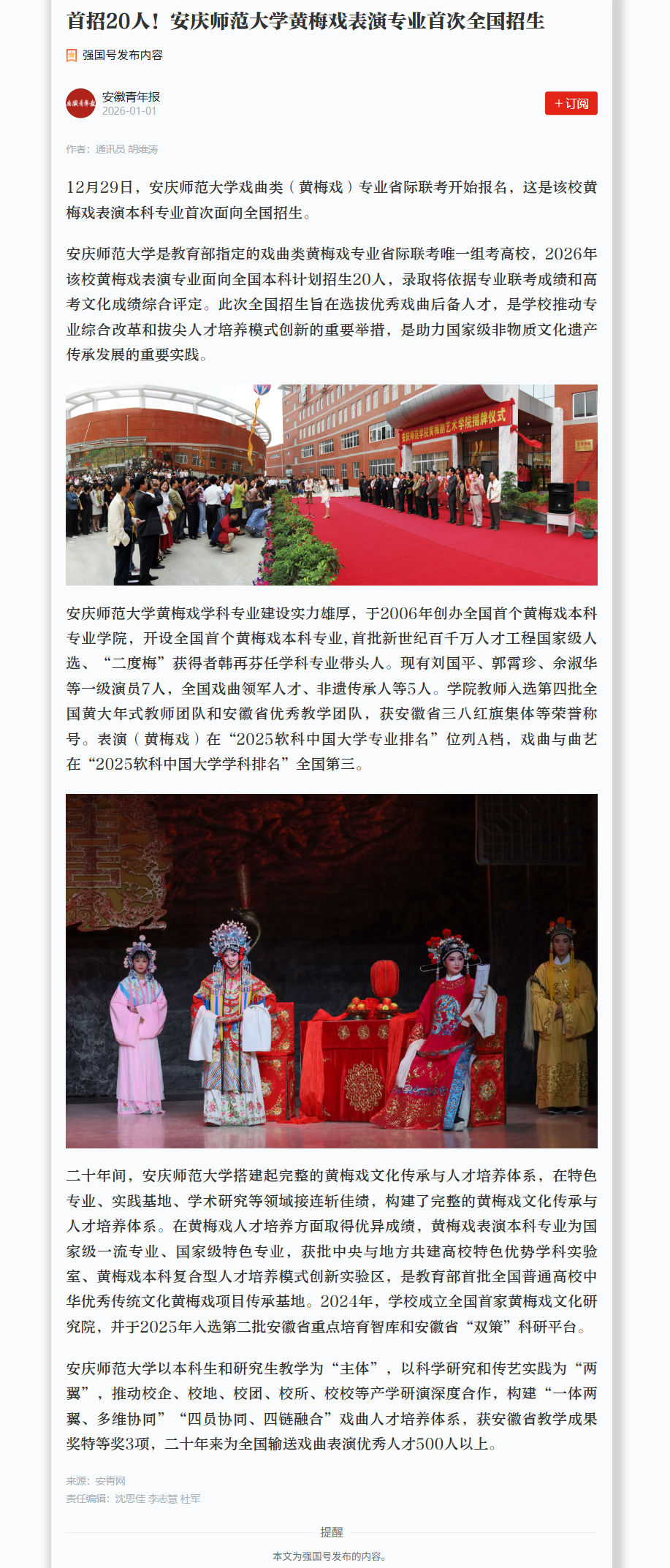 【学习强国】首招20人!太阳成tyc7111cc黄梅戏表演专业首次全国招生https://article.xuexi.cn/articles/index.html?art_id=16068450243458850344&source=share&study_style_id=feeds_opaque&reco_id=1036474fb8a0c0a8857e000v&share_to=wx_single&study_share_enable=1&study_comment_disable=0&ptype=0&item_id=16068450243458850344