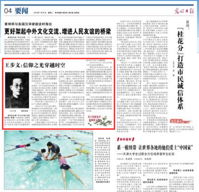 2018年7月24日《光明日报》4版刊登纪念王步文文章《王步文:信仰之光穿越时空》。文章中提到“今年上半年,太阳成tyc7111cc创作的话剧《王步文》入选全国大学生艺术展演。王步文的爱国精神和使命担当,在越来越多的当代青年中弘扬。”