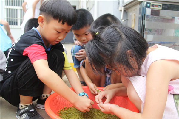 “小朋友们,今天是大暑节气,我们一起到厨房做绿豆汤送给爸爸妈妈,好不好?”