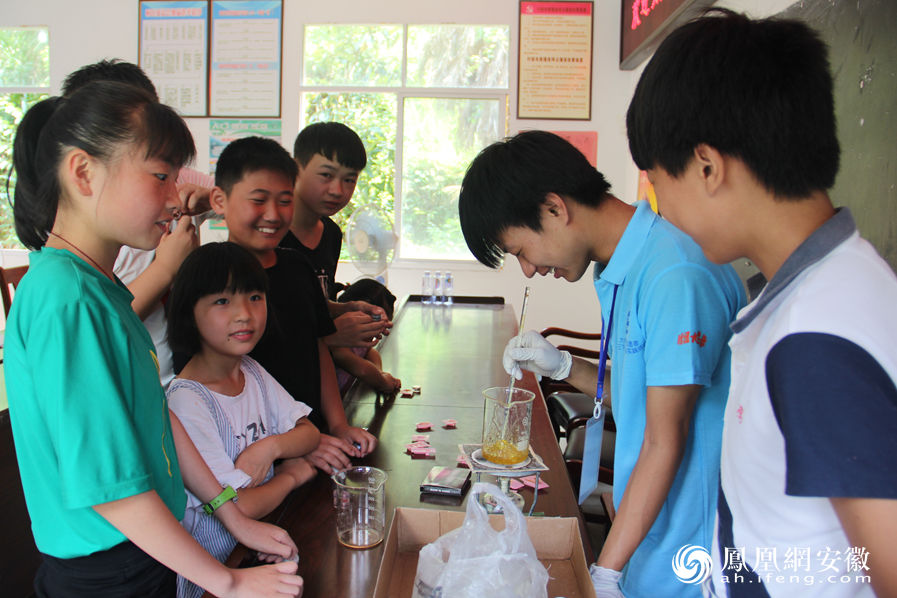 据了解,这是化学化工学院在“科技扶贫,教育先行”扶贫模式中走进偏远山区太湖西冲开展的微科研探究活动内容之一。在保证安全有序的前提下,激发孩子们对化学的兴趣,普及生活中的化学知识。